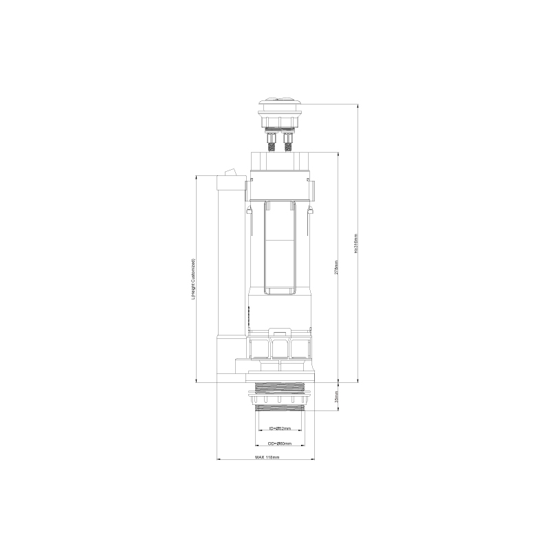 Close Coupled Dual Outlet Flush Valve